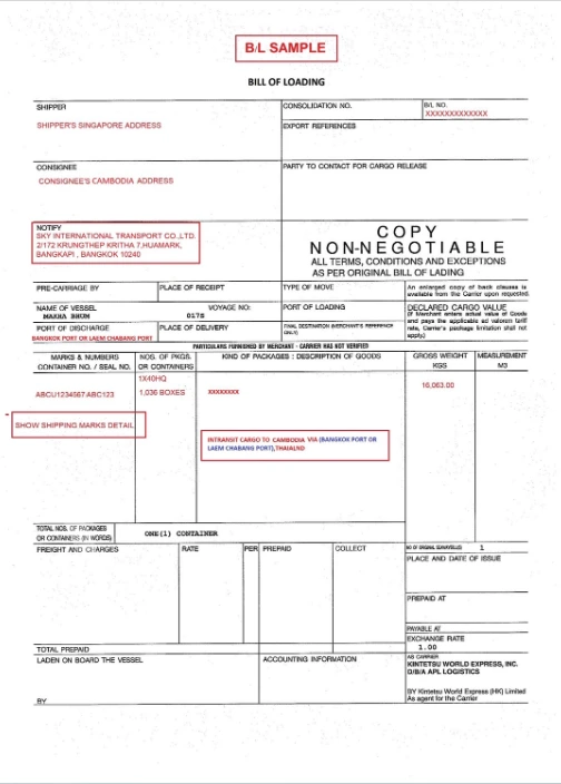 B/L Instruction